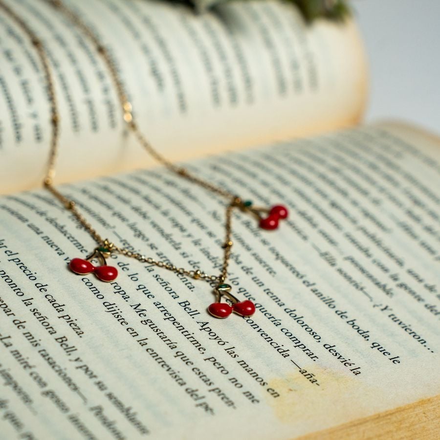 Collar elaborado en material Xuping con baño de oro de 18K y dije de tres cerezas rojas. Su diseño delicado y brillante combina color, elegancia y un toque divertido, ideal para quienes buscan una pieza moderna con acabado de alta calidad y duradero.