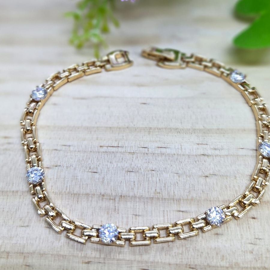 Cadena geométrica con brillantes redondos intercalados de gran tamaño. Precio por docena.