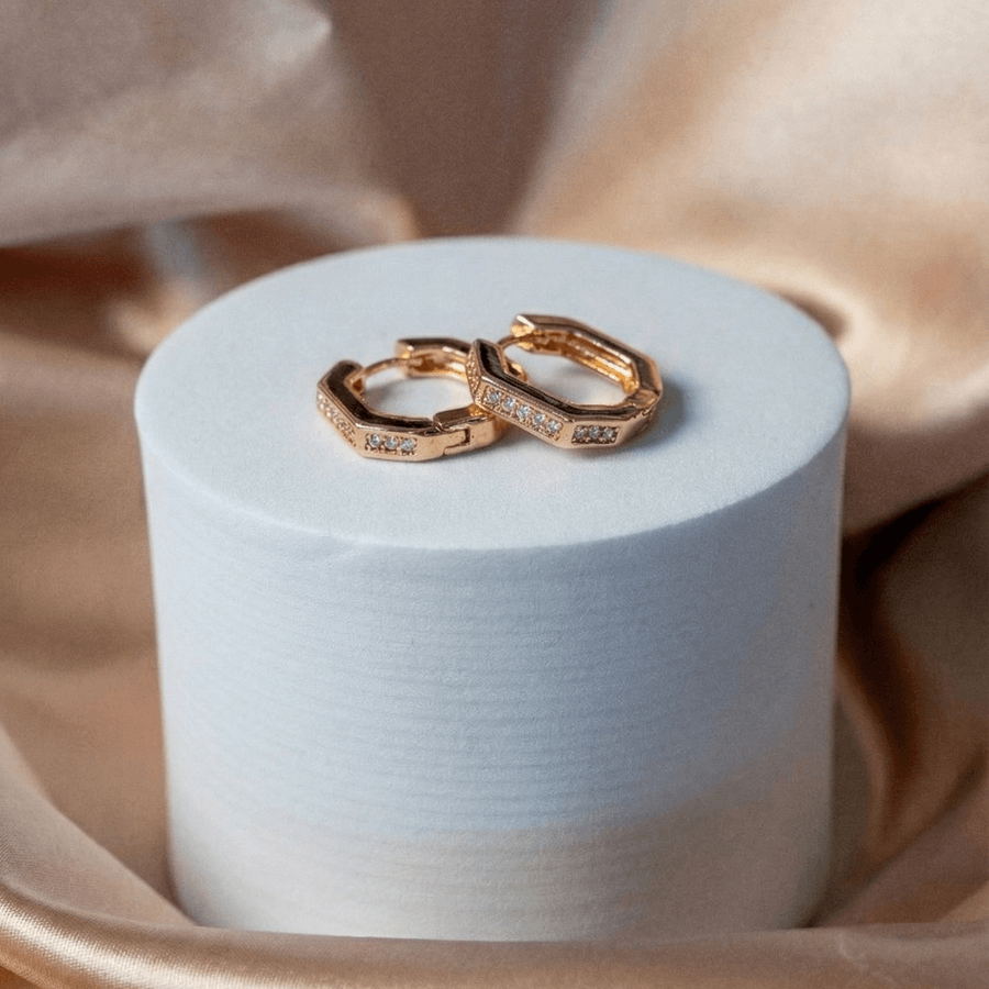 Huggies Hexagonales Dorados con Pavé