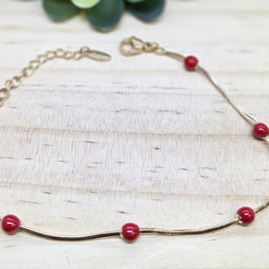 Pulsera de Cadena Fina con Cuentas Rojas