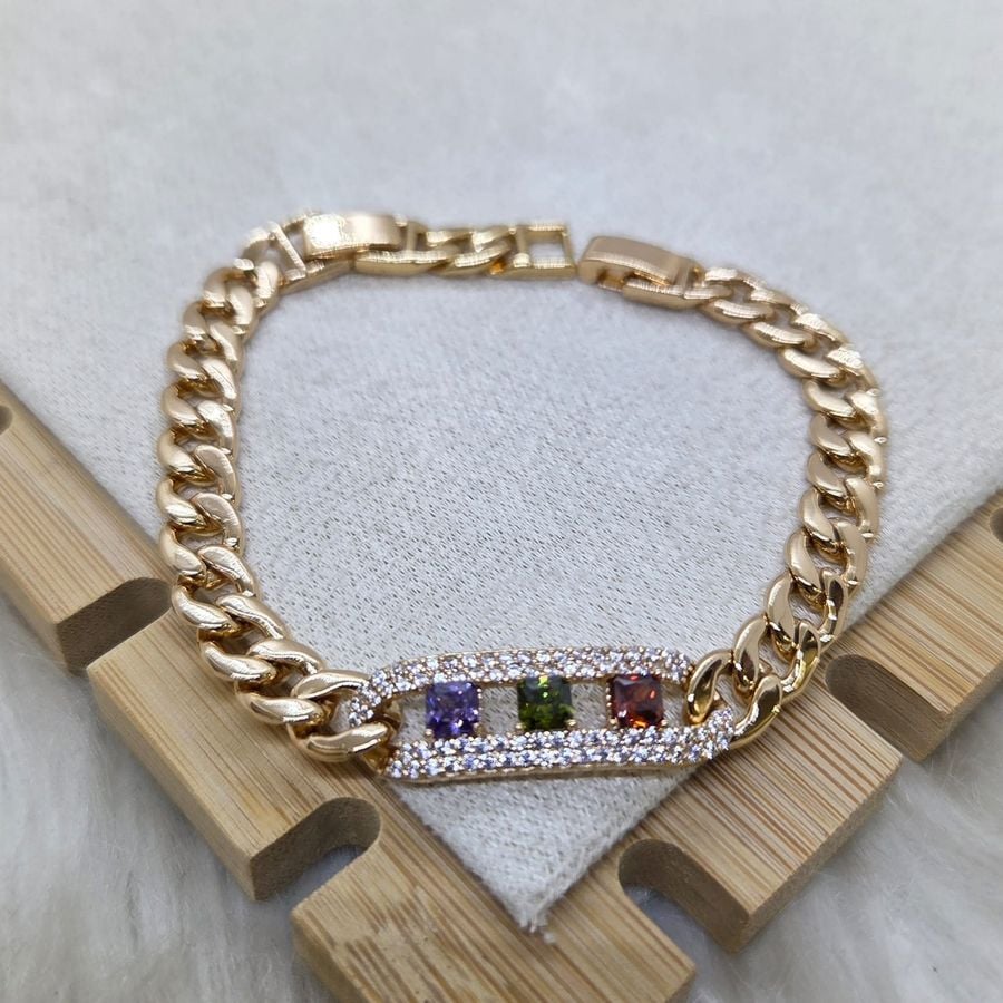 Pulsera de Eslabones Gruesos con Centro de Cristales Tricolor
