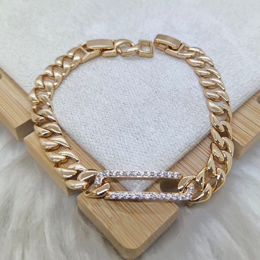 Añade una pieza de carácter y sofisticación contemporánea a tu colección con esta pulsera de diseño audaz. Esta joya destaca por su cadena de eslabones planos entrelazados, que ofrece una presencia sólida y una caída impecable sobre la muñeca, ideal para quienes buscan un accesorio con personalidad.