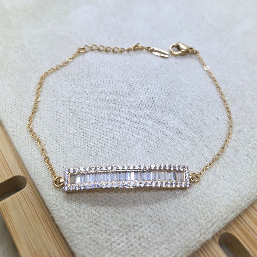 Pulsera de Línea Estilizada con Pavé y Corte Baguette