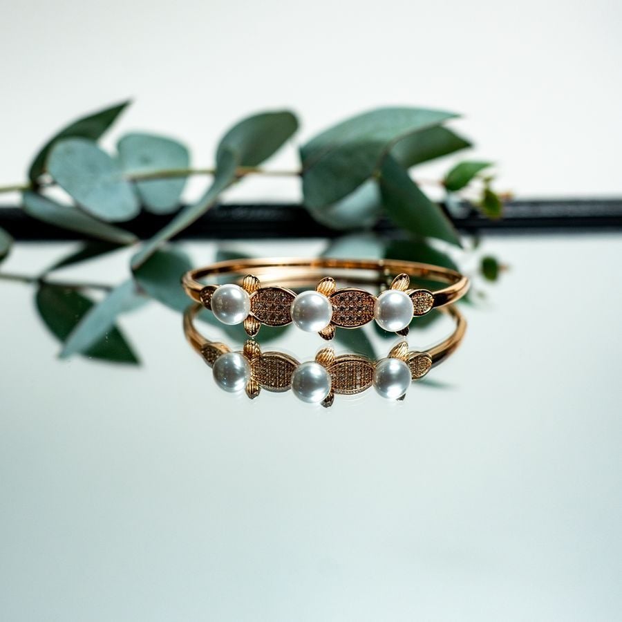 Pulsera rígida Xuping con perlas 🤍 elegante, resistente y con un acabado de lujo que realza cualquier look.