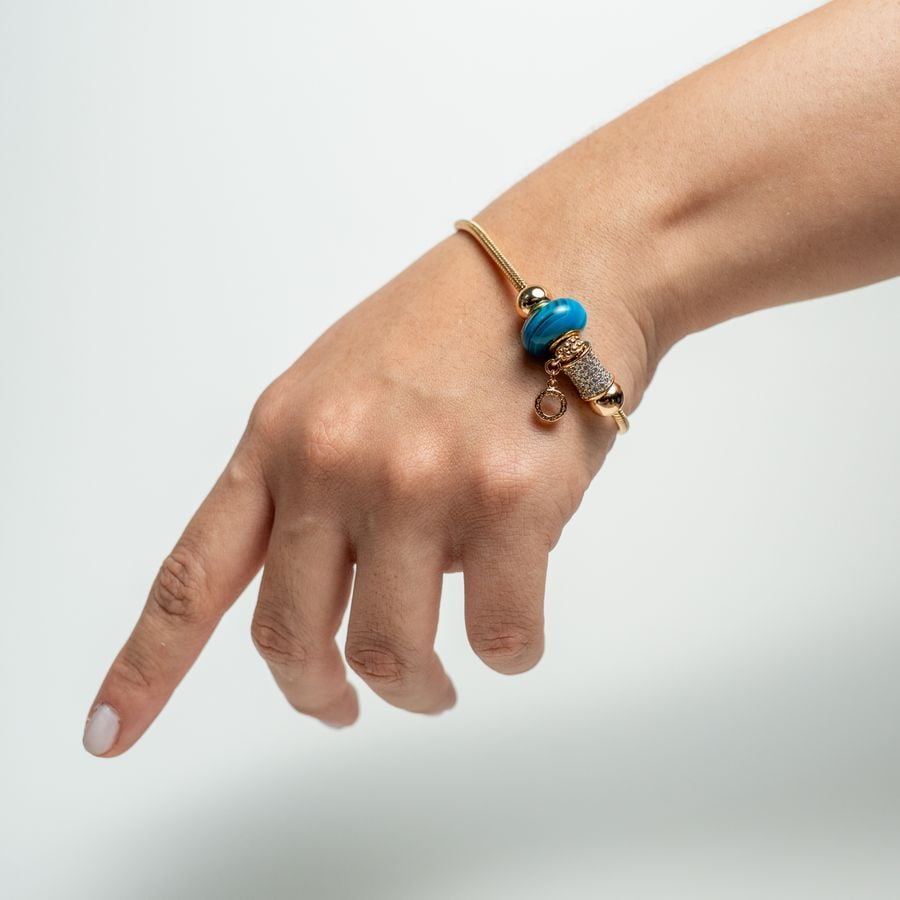 Pulsera tipo Pandora Xuping con dije turquesa elegante, resistente y con un color que resalta cualquier look.