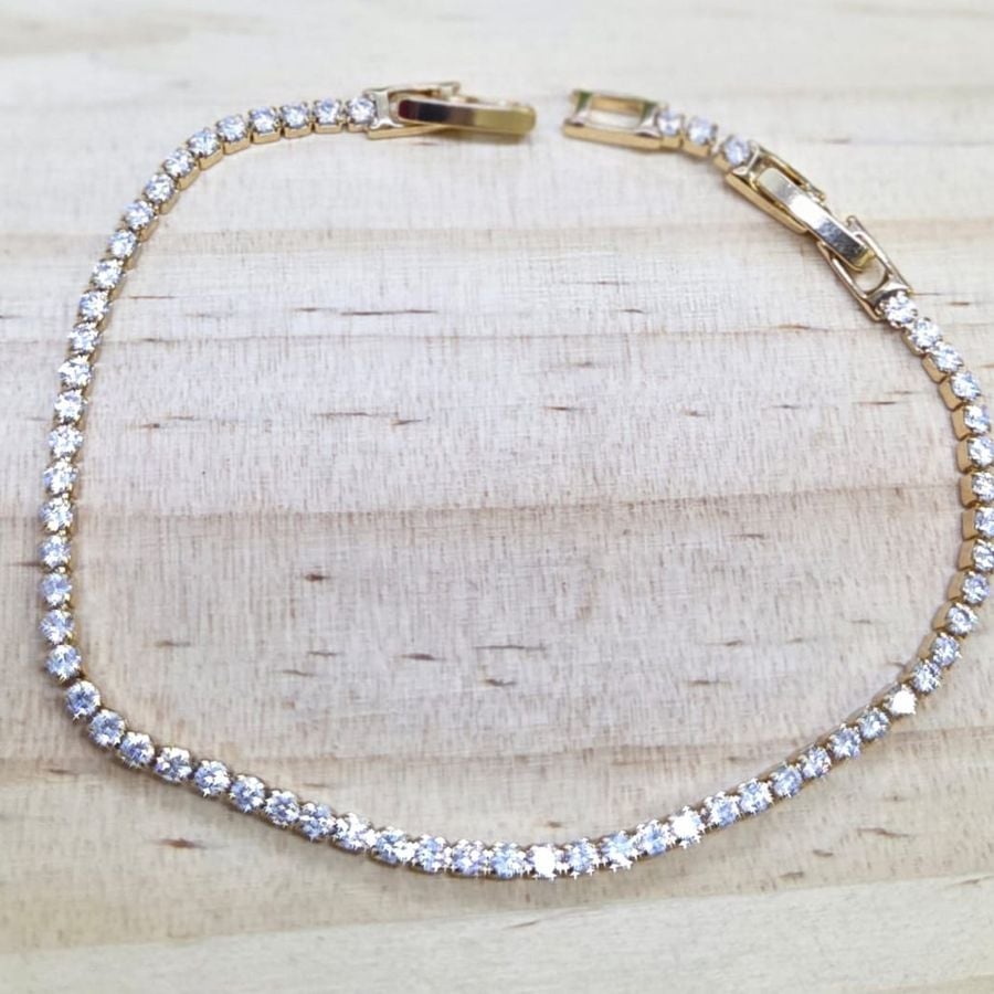 Fila continua de cristales finos engastados para un brillo sofisticado. Precio por docena.